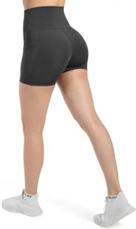 Shorts Damen Lissa, High Waist Radlerhose mit figurformendem Bund & seitlichen Eingrifftaschen, Training Shorts elastisch & enganliegend, ideal für Training, Alltag, Fitness & Yoga