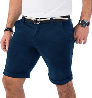 Herren Chino Shorts Hose Kurz Chinoshorts Inkl Gürtel Männer Sommer Bermuda Stretch Rc-2133 30 Navy