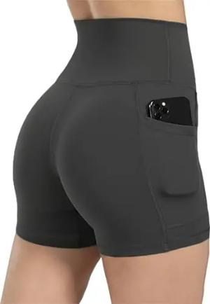 Sport Shorts Damen Amaze Pro, Seamless Blickdichte Radlerhose, Unsichtbarer Scrunch-Effekt, V-Shape High Waist Kurze Sporthose Biker Shorts Yoga Fitness Gym, Größe:XS, Color:Anthrazit Melange