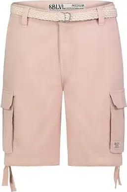 Damen Cargo Shorts mit Flechtgürtel Chino Bermuda mit Seitentaschen, Farben:Rosa, Größe:XXL