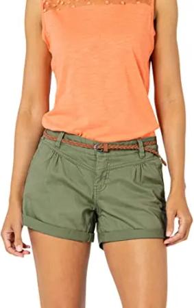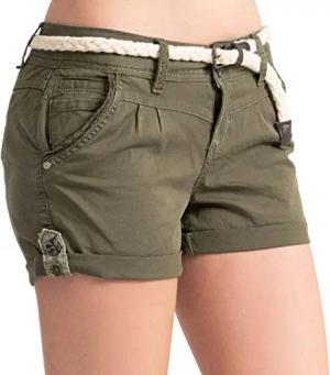Damen Kurze Hose Stretch-Shorts mit Flecht-Gürtel Middle-Green M