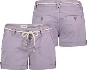 Damen Short Bermuda Kurze Hose Sommer Chino Stoff Hotpants mit Gürtel, Hosengröße:S / 36, Farbe:Lilac