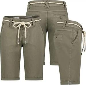 Damen Short Bermuda Kurze Hose Sommer Chino Stoff Knielang mit Gürtel, Hosengröße:M / 38, Farbe:Olive