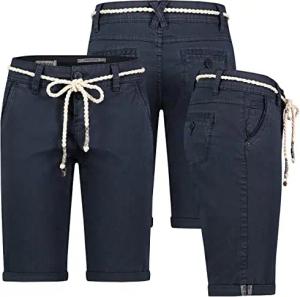 Damen Short Bermuda Kurze Hose Sommer Chino Stoff Sommer mit Gürtel, Hosengröße:XS / 34, Farbe:Navy