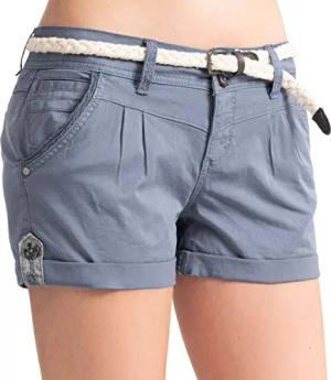 Damen Short Bermuda Kurze Hose Sommer Chino Stoff Hose mit Gürtel Neu, Hosengröße:S (36), Farbe:Anthrazit