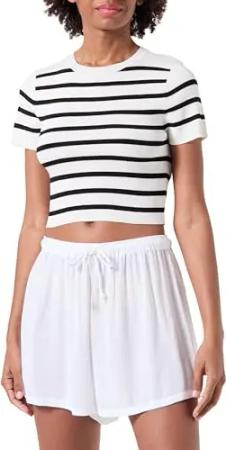 Damen Jeans Shorts Straight High Waist, Weiß (Th Optic White), 25W