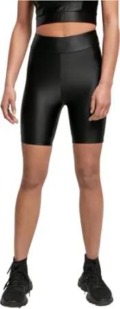 Damen Ladies Highwaist Shiny Metallic Cycle Shorts Black XXL