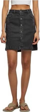 Damen Rock Ladies Organic Stretch Button Denim Skirt Black Washed 26