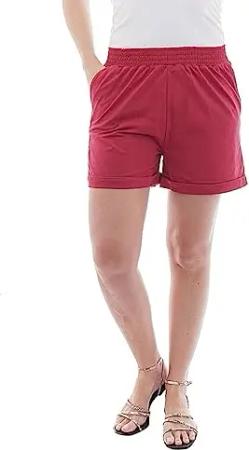 Damen Jogging Shorts Sweatshorts kurz 1/2 Baumwolle ROT M