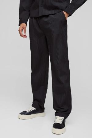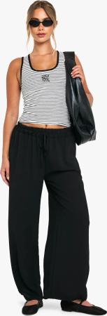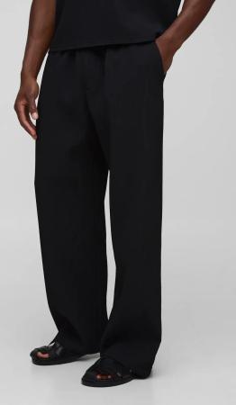 Elasticated Wide Leg Pleated Trousers - Black - M, Black
