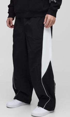 Elastische Colorblock Nylon Parachute-Hose In Knitteroptik - Black - S, Black