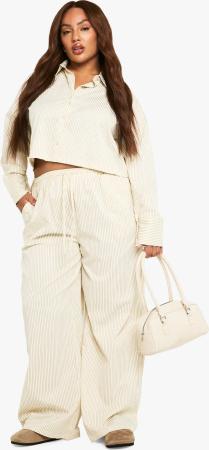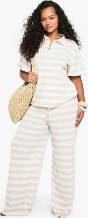 Plus Gestreifte Hose Mit Weitem Bein - Stone - 44, Stone