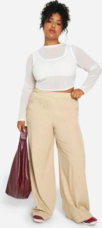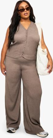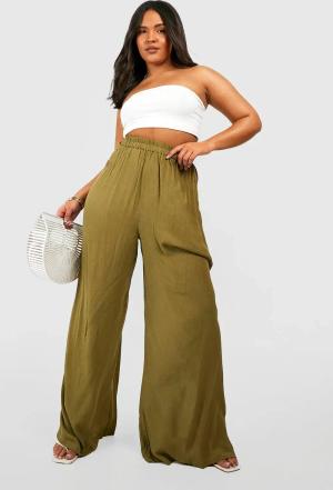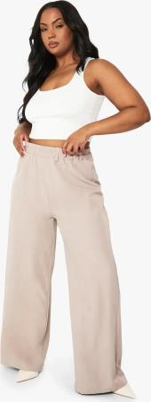 Womens Plus Crinkle Plisse Elasticated Wide Leg Trouser - Taupe - 44, Taupe