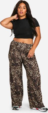 Plus Leopardenprint Jersey-Hose Mit Weitem Bein - Brown - 42, Brown