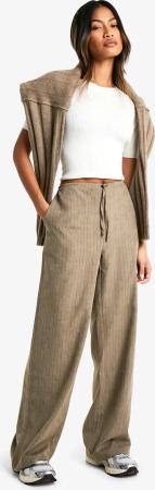 Soft Touch Oversize Hose Mit Weitem Bein Und Streifen - Khaki - 34, Khaki