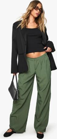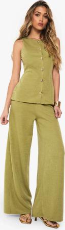 Womens Low Rise Crinkle Wide Leg Trouser - Olive - 36, Olive