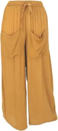 GURU SHOP Boho Sommerhose, Luftige Basic Hose, Weite Viskose Krepp Palazzohose - Kurkuma, Damen, Size:L