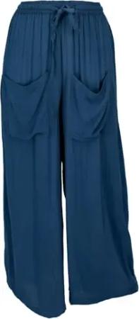 GURU SHOP Boho Sommerhose, Luftige Basic Hose, Weite Viskose Krepp Palazzohose - Nachtblau, Damen, Size:M