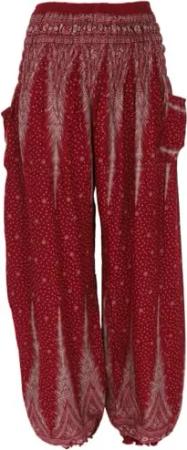 GURU SHOP Luftige Muckhose, Boho Pluderhose, Pumphose - Weinrot, Damen, Size:S