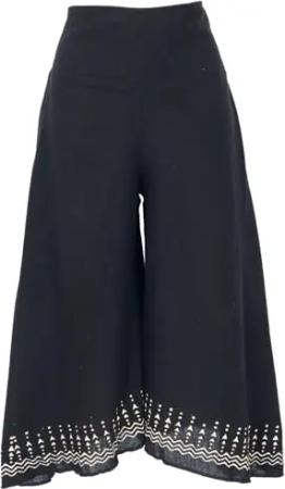 GURU SHOP Palazzohose, 3/4 Hosenrock, Bedruckte Natürliche Boho Schlaghose, Sommerhose - Schwarz, Damen, Size:S