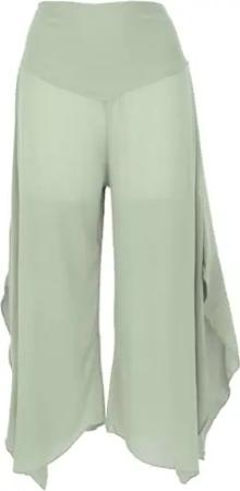 GURU SHOP Palazzohose, Weite Boho Sommerhose, Weiter Hosenrock - Salbei, Damen, Synthetisch, Size:M