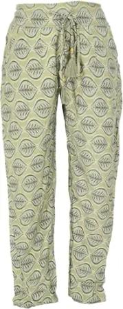 GURU SHOP Luftige Boho Hose, Weite Basic Sommerhose - Grün, Damen, Size:L
