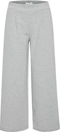 IHKATE SUS WIDE PA Damen Hose Stoffhose mit Stretch gerader Schnitt Elastikbund Crop Länge, Größe:M, Farbe:Grey Melange (200318)