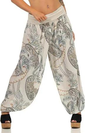 Malito Damen Aladinhose mit Print | Haremshose zum Tanzen | Pumphose zum Chillen - Freizeithose - Pluderhose 7185 (beige)