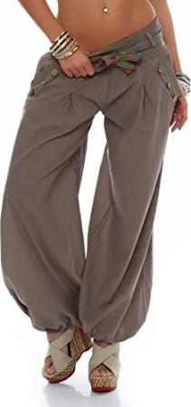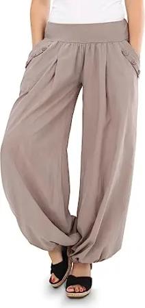 Malito - Damen Haremshose - Pumphose aus Baumwolle - leichte Sommer Stoffhose - Pluderhose zum Tanzen & Chillen - dünne Aladinhose 1482 (Fango)