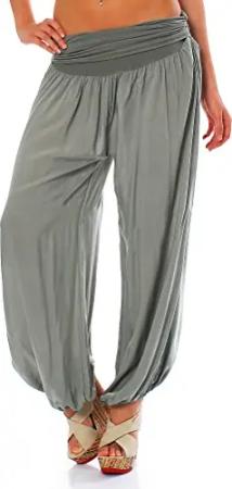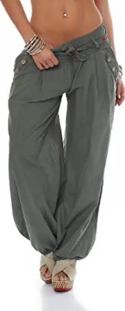 Malito - Damen Haremshose - Pumphose aus Baumwolle - leichte Sommer Stoffhose - Pluderhose zum Tanzen & Chillen - dünne Aladinhose 1482 (Oliv)
