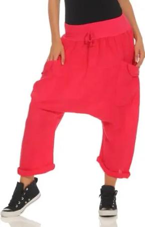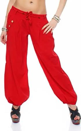 Malito - Damen Haremshose - Leichte Stoffhose aus Baumwolle - Bequeme Hippie Sommerhose für warme Tage - Aladinhose/Pumphose 3417 (Rot)