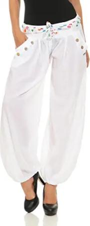 Malito - Damen Haremshose - Leichte Stoffhose aus Baumwolle - Bequeme Hippie Sommerhose für warme Tage - Aladinhose/Pumphose 3417 (Weiß)