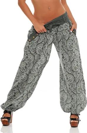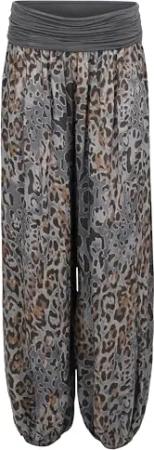 Malito - Damen Haremshose Leo Print - luftig leichte Pumphose - dünne Sommer Strandhose - Freizeithose Aladinhose zum Chillen 1484 - (Dunkelgrau)