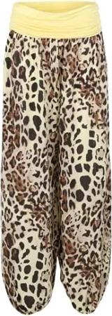 Malito - Damen Haremshose Leo Print - luftig leichte Pumphose - dünne Sommer Strandhose - Freizeithose Aladinhose zum Chillen 1484 - (Gelb)
