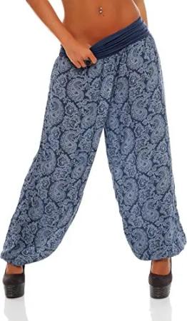 Malito – Damen Haremshose mit Print – Pumphose aus Baumwolle – Sommerhose für warme Tage – Stoffhose zum Tanzen, Chillen & Zumba – Aladinhose für Frauen 7181 (Dunkelblau | Größe 34-40)