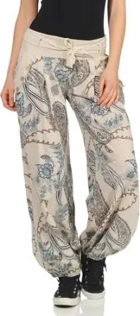 Malito – Damen Haremshose mit Print – Pumphose aus Baumwolle – Leichte Stoffhose – Sommerhose für warme Tage – Aladinhose 3485 (Beige | Größe 34-40)