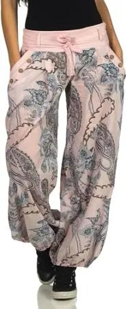 Malito – Damen Haremshose mit Print – Pumphose aus Baumwolle – Leichte Stoffhose – Sommerhose für warme Tage – Aladinhose 3485 (Rosa | Größe 34-40)