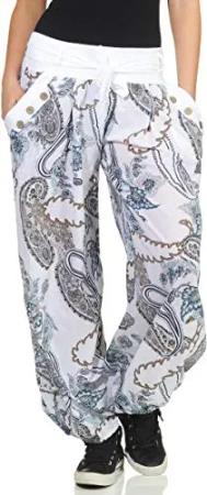 Malito Damen Aladinhose mit floralem Muster, Haremshose zum Tanzen, Pumphose zum Chillen - Freizeithose - Pluderhose 8938 (weiß)