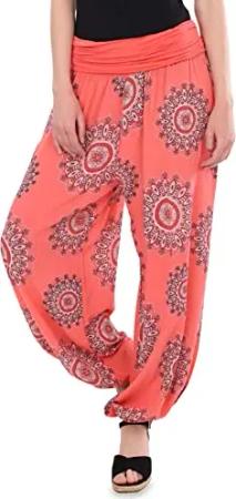 Malito – Haremshose Damen mit Print – Pumphose aus Baumwolle – Leichte Stoffhose – Sommerhose für warme Tage – Dünne Aladinhose für Frauen 3481 (Coral)