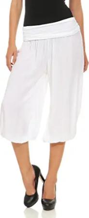 Malito – Damen Haremshose – Pumphose aus Baumwolle – Kurze Stoffhose für den Sommer – Capri Pluderhose zum Tanzen, Chillen & Yoga – knielange Hose 1483 (Weiß)