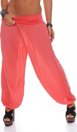 Malito - Damen Haremshose - Pumphose aus Baumwolle - leichte Sommer Stoffhose - Pluderhose zum Tanzen & Chillen - dünne Aladinhose 1482 (Coral)