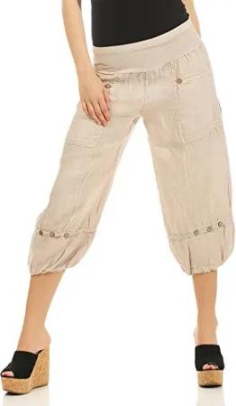 Malito Damen Pumphose aus Leinen | Stoffhose in Unifarben | Freizeithose für den Strand | Capri Hose 6285 (beige)
