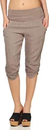 Malito Damen Hose aus Leinen - Stoffhose in Uni Farben - Freizeithose für den Strand - Chino Capri Hose 1575 - Fango, S