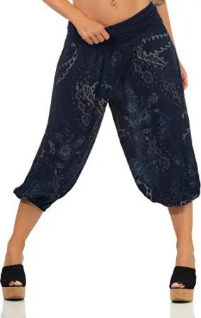 Malito - Damen Haremshose kurz mit Print - Pumphose aus Baumwolle - Leichte 3/4 Stoffhose - Pluderhose zum Tanzen, Chillen & Yoga - knielange Capri Hose 7182 (Dunkelblau)