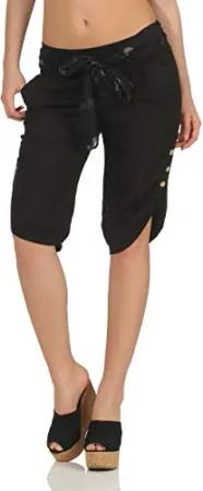 Malito Damen Hose aus Leinen | Stoffhose in Uni Farben | Freizeithose mit Knöpfen | Chino - Capri - Strandhose 7988 (schwarz, XL)
