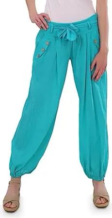 Malito - Damen Pumphose - leichte Stoffhose für den Sommer - Freizeithose für Strand & Alltag - lässige Haremshose 3418 (türkis)