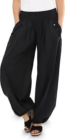 Malito - Damen Pumphose - luftige Stoffhose für Strand & Alltag - lockere Pluderhose für den Sommer - lässige Sommerhose Freizeithose 23245P (34-40 schwarz)