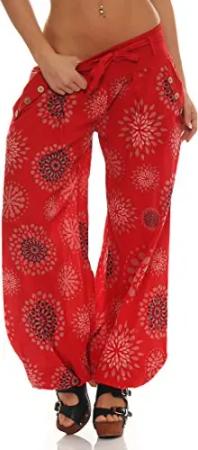 Malito – Haremshose Damen mit Print – Pumphose aus Baumwolle – Leichte Stoffhose – Sommerhose für warme Tage – Dünne Aladinhose für Frauen 3481 (Rot)