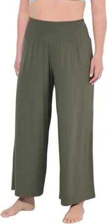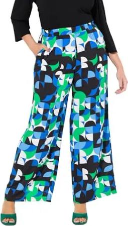 Damen große Größen Übergrößen Plus Size Hose, grafischer Druck, weites, gerades Bein, Elastikbund naturgrün 46+ 836520450-46+