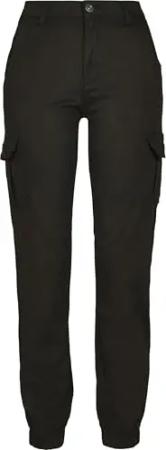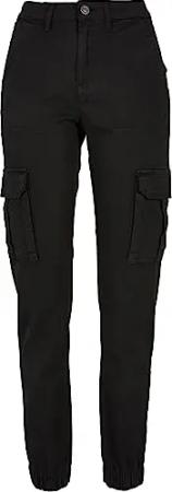 Damen Ladies High Waist Cargo Pants Hose, Black, 32
